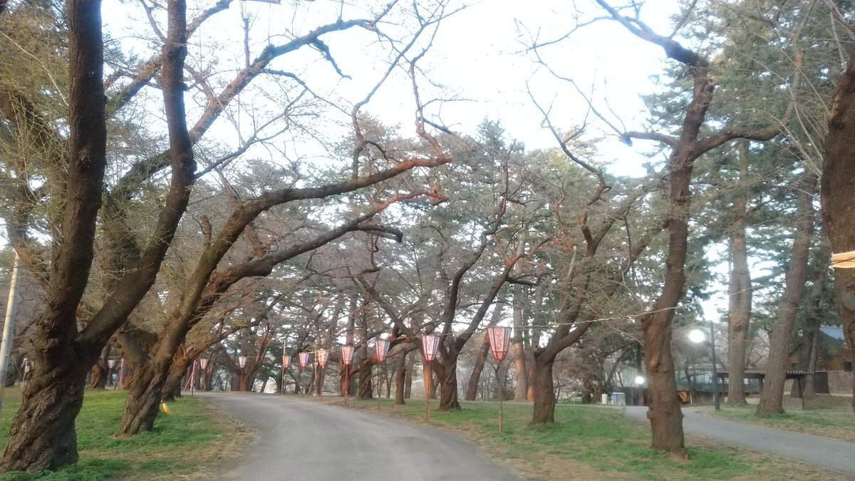 ちえっちーです。 2026年4月16日18時現在の #五所川原市 #金木町 #芦野公園 の桜の開花状況。#道路端や南側の桜は 咲いてきていて 北側や #太宰治像 に 続く通りはこれから。 明日からいよいよ #津軽鉄道 は #さくら臨時時刻表